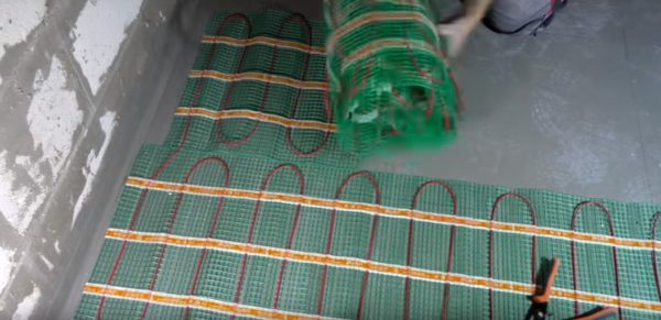 В случае если отсутствует возможность монтировать кабель, альтернативой будут термоматы. Конструкция представляет собой сетку из стеклопластика, на которую прикреплен тоненький кабель. Если делать укладку, то дополнительная стяжка не понадобится. После того как провели монтаж термоматов, их сразу покрывают материалом для пола.