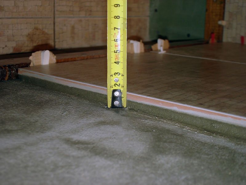 ΠΡΠ»ΠΈ ΠΏΠ΅ΡΠ΅ΠΏΠ°Π΄Ρ ΡΡΠΎΠ²Π½Ρ ΠΏΠΎΠ»Π° Π±ΠΎΠ»Π΅Π΅ 7 ΠΌΠΌ, Π½Π΅ΠΎΠ±Ρ ΠΎΠ΄ΠΈΠΌΠΎ ΠΏΡΠ΅Π΄Π²Π°ΡΠΈΡΠ΅Π»ΡΠ½ΠΎ Π²ΡΠΏΠΎΠ»Π½ΠΈΡΡ Π΅Π³ΠΎ ΡΡΡΠΆΠΊΡ ΠΈ Π²ΡΡΠ°Π²Π½ΠΈΠ²Π°Π½ΠΈΠ΅. ΠΠ»Ρ ΡΡΠΎΠ³ΠΎ ΠΈΡΠΏΠΎΠ»ΡΠ·ΡΡΡ ΡΠ°ΠΌΠΎΠ²ΡΡΠ°Π²Π½ΠΈΠ²Π°ΡΡΠΈΠ΅ΡΡ ΡΠΌΠ΅ΡΠΈ ΠΈΠ»ΠΈ Π·Π°Π»ΠΈΠ²ΠΊΡ Π±Π΅ΡΠΎΠ½Π½ΠΎΠΉ ΡΡΡΠΆΠΊΠΎΠΉ ΠΏΠΎ Π²ΡΡΡΠ°Π²Π»Π΅Π½Π½ΡΠΌ ΠΌΠ°ΡΡΠΊΠ°ΠΌ. ΠΠ° ΡΡΠ΅Ρ ΡΡΡΠΆΠΊΠΈ, ΡΡΠΎΠ²Π΅Π½Ρ ΠΏΠΎΠ»Π° ΠΌΠΎΠΆΠ΅Ρ ΠΏΠΎΠ΄Π½ΡΡΡΡΡ ΠΏΡΠΈΠΌΠ΅ΡΠ½ΠΎ Π½Π° 5 ΠΈ Π±ΠΎΠ»Π΅Π΅ ΡΠ°Π½ΡΠΈΠΌΠ΅ΡΡΠΎΠ².