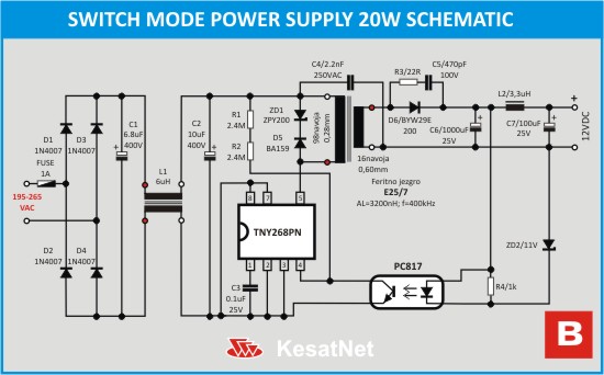 Схема включения TOP223 очень проста, и доступна для повторения даже не очень опытными радиолюбителями. Используя импульсный БП на TOP221 — TOP227, можно получить до 40В 3А выходного напряжения. Или другими словами до 150 Ватт мощности — в модели TOP227. Входное напряжение по паспорту лежит в пределах 85 — 265В, что позволяет эксплуатировать TOP221 — TOP227 в сетях и 110В, и 220В.