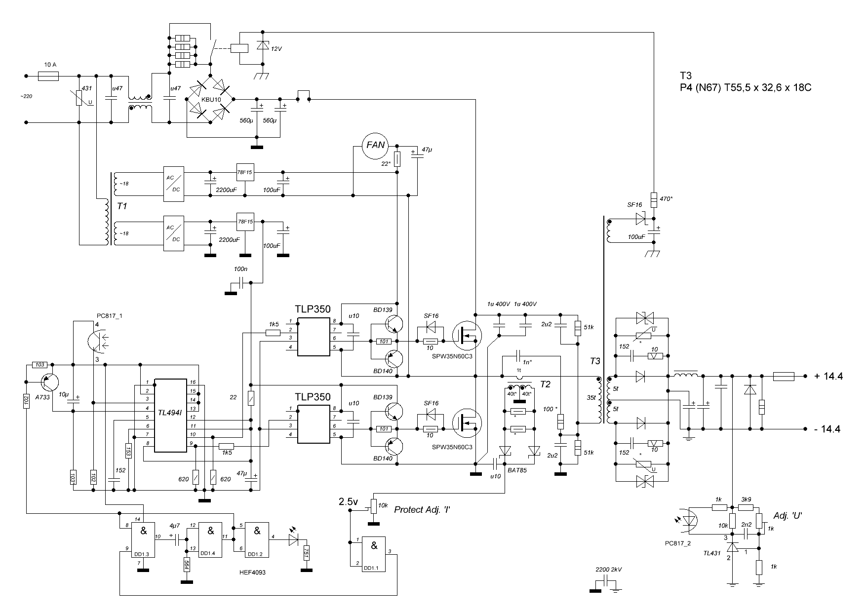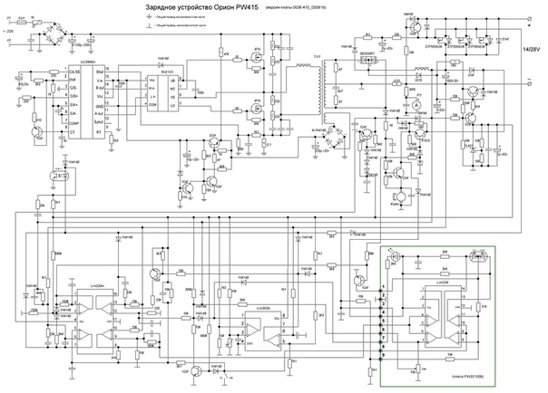 - Система защиты и регулировочный модуль выполнены на основе LM Датчик, определяющий параметры тока, помещен на ферритовом кольце с обмоткой.