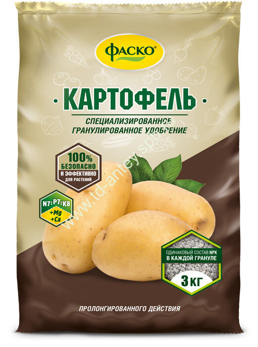 Органоминеральное удобрение содержит сбалансированный комплекс микро-и макроэлементов, необходимых для нормального развития картофеля. Минеральные вещества находятся в легкоусвояемой растениями форме. Дополнительно в состав препарата включены натуральные растительные репелленты, отпугивающие проволочников и других почвенных вредителей.