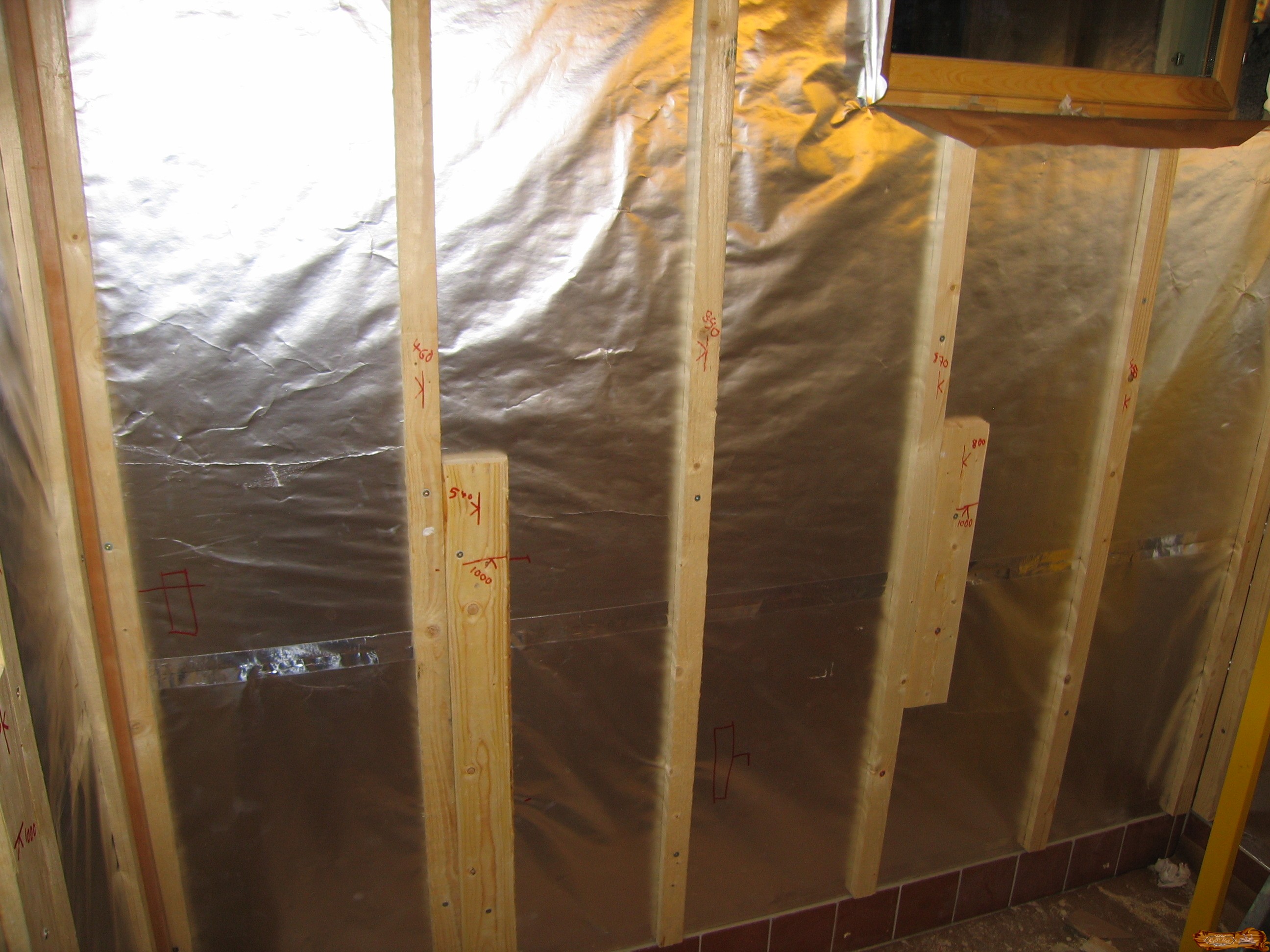 Фото Дэвида ХэмслиЕго структура с закрытыми ячейками задерживает водяной пар, а поверхность, покрытая фольгой, действует как лучистый барьер.Не рекомендуется для наружных работ и низкопробных применений. Не горюч, но должен быть защищен стеновыми панелями.