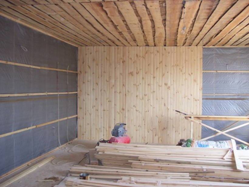 Любой утеплитель или же специальная фольга должны монтироваться внахлест непосредственно на саму стену. Укрепить их можно с помощью специального степлера. Бруски уже нужно будет крепить сверху данного материала, а не наоборот.После того как стены будут подготовлены, можно переходить к следующему этапу – изготовления каркаса, на который после будет крепиться сама вагонка.