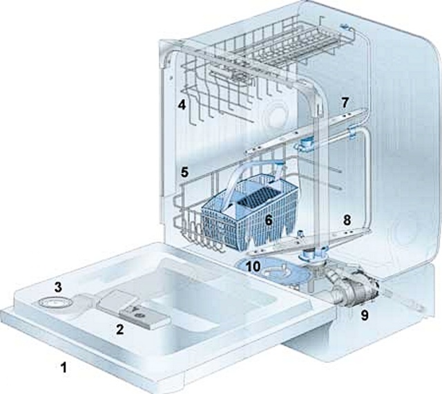 Датчик уровня воды — небольшое (размером 2 × 2 см), но значимое устройство, расположенное под защитной крышкой посудомоечной машины. Он контролирует не только количество воды, но и регулирует количество подаваемой воды. Таким образом, он выполняет некоторые функции электронного контроллера.