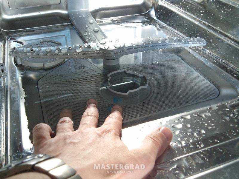 Его надо очистить от остатков пищи. Вообще посуду в посудомойку рекомендуется ставить без остатков. Фильтр находится по центру внизу внутри посудомойки. Так же, всегда рекомендуемым использовать соль для смягчения воды, так Ваша посудомоечная машина прослужит значительно дольше.