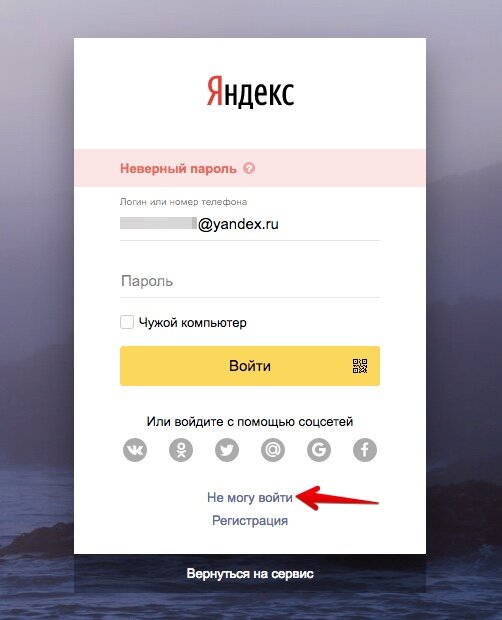 Обратите внимание, что авторизоваться в Яндексе можно только через почту Яндекса. Авторизация через другие почтовые ящики — не подойдет. Если вы видите сообщение «Ваш логин заблокирован!», значит ваш аккаунт заблокирован следует подождать 20-30 минут и попробовать вновь.