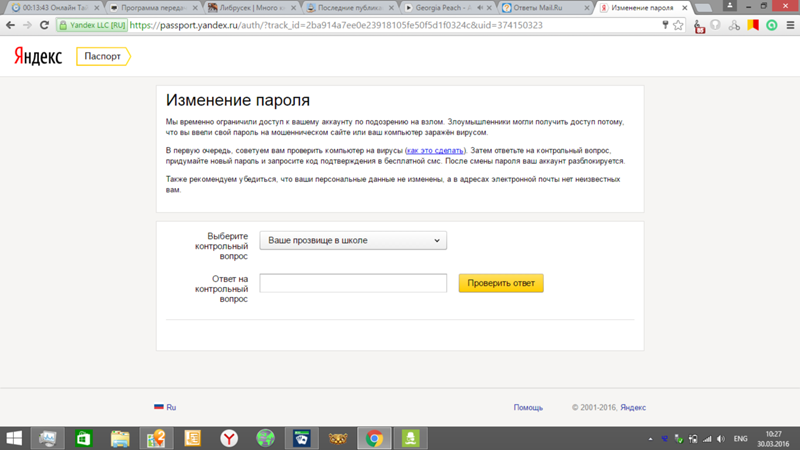 Вот это да! Аккаунт взломали? Подобрали пароль из 20 символов, а потом его НЕ поменяли? Хорошо, ввожу ответ на контрольный вопрос и получаю такую вот форму: