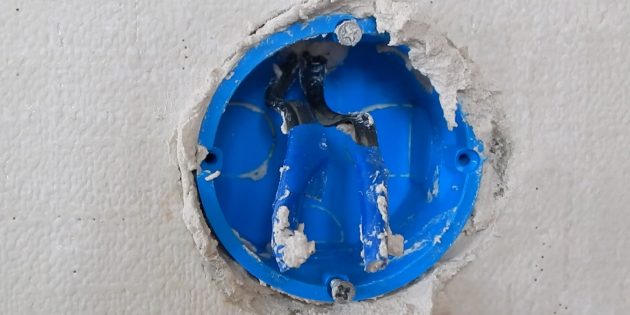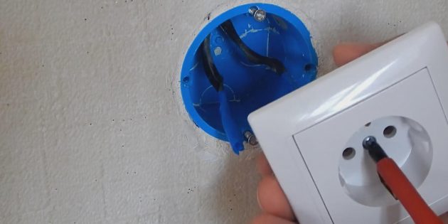 При оборудовании в доме заземляющего контура соответствующий провод обматывается и прячется в гнезде. К такому способу прибегают при подключении «неопасных» потребителей – люстры, телевизор.