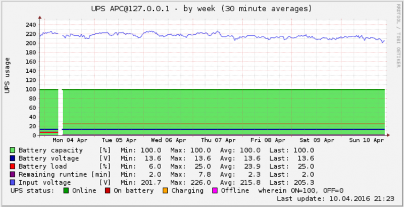 Пятое УЗО и пакетник 6А характеристики B выделены на освещение, которое, напомню, идёт по залитым на ДСК в бетон алюминиевым проводам. Мне пришлось извратиться, чтобы по уму подключить всё это после UPS. Но эту тему отложу на потом, да и то, если кому интересно будет. Розетка с воткнутой вилкой — отсюда.