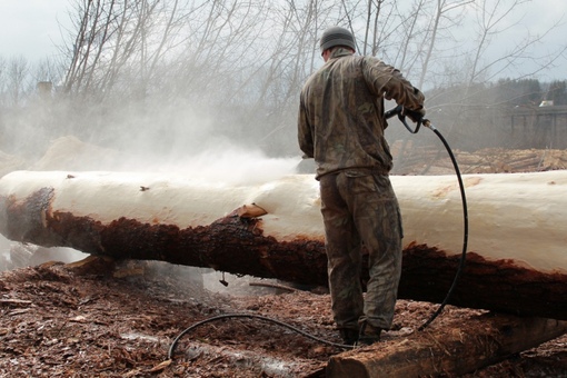 Влажный способ хранения древесины, дождевание лесоматериалов
