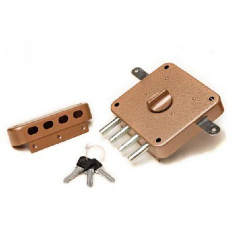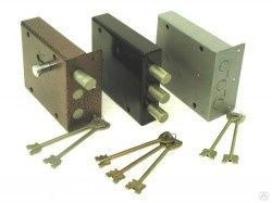 В корпусе предусматриваются усиленные ригели. Бронепластина помогает защитить устройство от силового метода вскрытия. В магазинах представлены замки врезного и накладного типа.