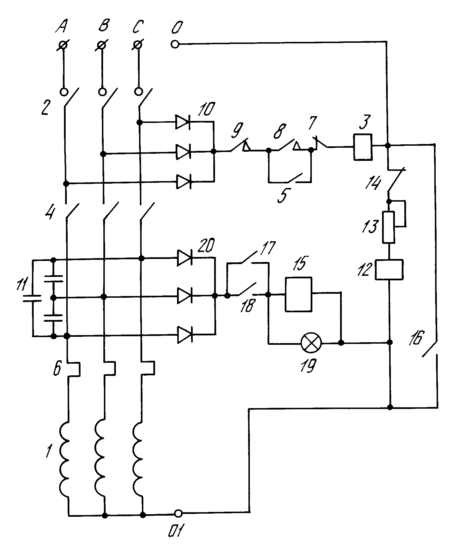 Рис. 1. Схема устройства для защиты трехфазных электродвигателей.