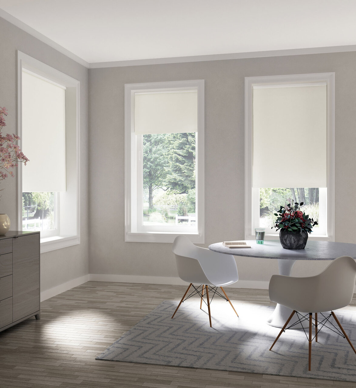 У них был такой умный дизайн, с затемненной рулонной шторкой спереди и второй непрозрачной шторкой, спрятанной за ней. Каждую штору можно опустить независимо, что дает вам выбор полной темноты с полностью опущенной затемняющей шторами, просто скатывается экран конфиденциальности, чтобы скрыть окно, не теряя света (в дневное время) , или обе жалюзи убраны, чтобы покинуть окно полностью раскрыт.